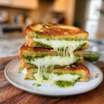 Indulge in the ultimate comfort food with this Best Pesto Grilled Cheese. This irresistible sandwich features perfectly melted mozzarella and sharp cheddar, harmoniously blended with fresh basil pesto, all nestled between two slices of golden-buttered bread. Each bite delivers a delightful crunch and a burst of flavor that will transport you back to cozy kitchen memories. Perfect for lunch or a comforting dinner, this gourmet twist on a classic is sure to impress!