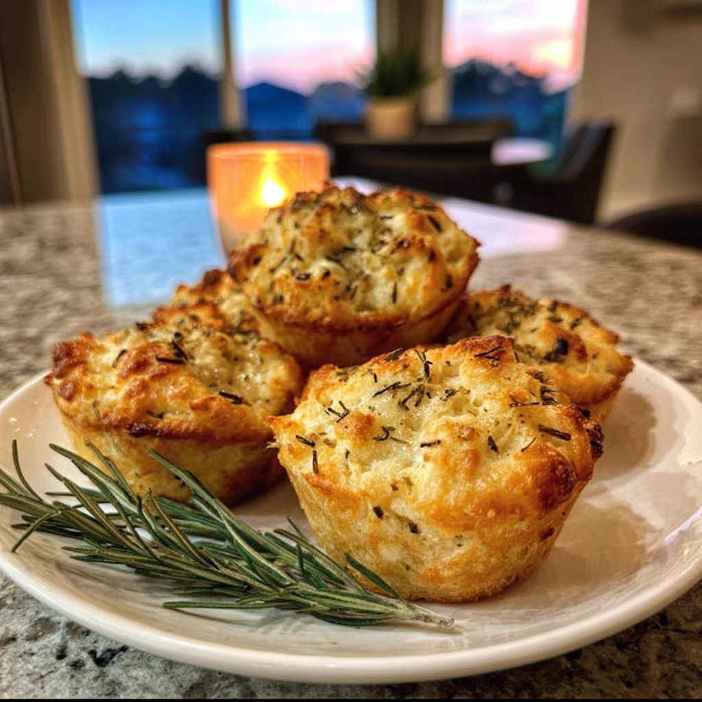 Irresistible Golden Crust Garlic Rosemary Focaccia Muffins