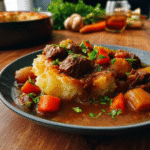 I still remember the first time I enjoyed this delightful stew at my grandmother’s kitchen table. The aroma wafted through the air, promising rich flavors that danced on my palate. Every bite was a blend of savory beef, fresh vegetables, and the creamy potato topping that made it unforgettable. Whether you’re looking to impress guests or simply enjoy a cozy night in, this beef stew is the perfect choice for any occasion.