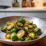 Remove from heat and drizzle fresh lemon juice over the cooked Brussels sprouts for brightness. Toss gently to combine all flavors.