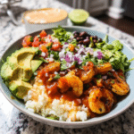 Flavorful Shrimp Burrito Bowls are a vibrant and satisfying dish perfect for any gathering. Bursting with juicy shrimp, colorful vegetables, and creamy toppings, these bowls offer a delightful combination of textures and flavors. Drizzled with fresh lime juice and served over fluffy brown rice, they transform a simple meal into a fiesta on your table. Get ready to impress your guests with this easy-to-make, customizable recipe!