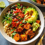 Experience a burst of flavors and textures with this Vegan Sweet Potato Burrito Bowl. Featuring roasted sweet potatoes, protein-packed black beans, and creamy avocado, this vibrant dish is not only aesthetically pleasing but also packed with nutrients. Perfect for a quick weeknight dinner or meal prep, it’s a delightful way to enjoy wholesome ingredients in one bowl!