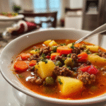 Warm your soul with this comforting Hearty Ground Beef Vegetable Soup, a classic recipe that brings together tender ground beef, colorful vegetables, and aromatic herbs in a rich broth. Perfect for chilly nights or family gatherings, this delicious soup is easy to prepare and will have everyone asking for seconds.