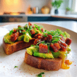 Elevate your breakfast or snack game with this Irresistible Avocado and Chorizo Toast. This delightful dish pairs creamy avocado with spicy chorizo on toasted bread, creating a flavor explosion in every bite. Perfect for lazy weekends or brunch gatherings, this recipe is quick to prepare and sure to impress. Fresh herbs and zesty lime juice add brightness, making it not just tasty but visually appealing too. Get ready to indulge in this deliciously satisfying toast that’s bound to become a favorite.