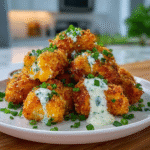 Indulge in the ultimate party snack with these Cheesy Jalapeño Ranch Chicken Poppers. Each bite presents a delightful crunch filled with a creamy, cheesy center infused with spicy jalapeños and zesty ranch flavor. Paired with a rich creamy dip, these poppers are perfect for any gathering, game night, or cozy binge-watching session. Get ready to impress your guests and enjoy the explosion of flavors!