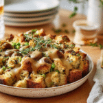This dish is perfect for holiday gatherings, family dinners, or even a cozy weeknight meal. I fondly recall my grandmother’s kitchen bustling with excitement as she prepared her famous stuffing. The blend of ingredients filled the air with enticing scents, instantly making everyone feel at home. If you want to impress your guests or simply indulge in something delicious, this chestnut and herb stuffing will not disappoint. Get ready to savor every bite!