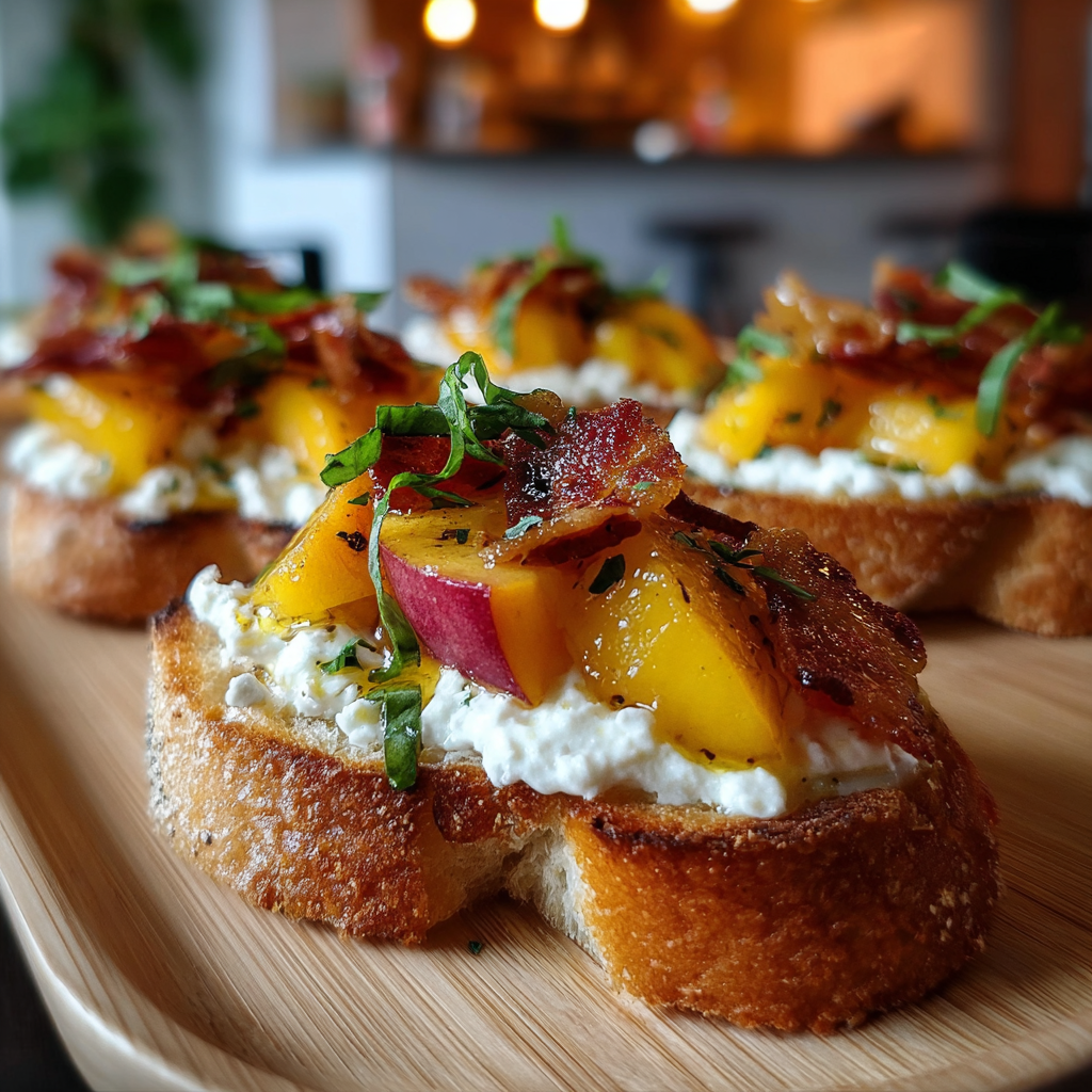 Have you ever tasted a dish that perfectly balances sweet and savory? The Honey Ricotta Peach Crostini with Crispy Pancetta Bliss does just that. This delightful appetizer features creamy ricotta cheese, juicy peaches, and the irresistible crunch of crispy pancetta, all layered atop a toasted crostini. Each bite delivers a symphony of flavors and textures that will leave your guests craving more.