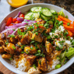 Indulge in the perfect harmony of sweet, spicy, and savory with this Hot Honey Chicken Bowl. Featuring tender chicken glazed with a honey-chili mix, it’s served over a bed of fresh veggies and grains for a satisfying meal that’s ideal for busy nights or casual gatherings. Each bite is an explosion of flavor that will keep your friends and family coming back for more!