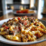Loaded Cheeseburger Alfredo Pasta combines two comfort food favorites into one dish: cheeseburgers and creamy pasta Alfredo. The use of ground beef gives it that hearty feel while a blend of cheeses creates a rich sauce that clings beautifully to each piece of pasta. This fusion results in a meal that’s both filling and flavorful—perfect for family dinners or gatherings.