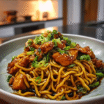 Sticky Garlic Chicken Noodles are a flavorful dish made with marinated chicken cooked with garlic and served over noodles. The combination creates a deliciously sticky sauce that clings to both the chicken and noodles, enhancing every bite. It’s perfect for quick weeknight dinners or meal prep as it comes together quickly while delivering satisfying flavors.