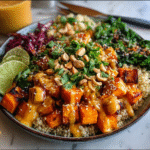 Indulge in the vibrant flavors of the Thai Peanut Sweet Potato Buddha Bowl, a delightful medley of roasted sweet potatoes, fresh vegetables, and a creamy peanut sauce. This nourishing dish is perfect for any occasion, offering a satisfying balance of textures and tastes that will leave you craving more. Whether you’re enjoying it for dinner with friends or meal prepping for the week ahead, this bowl is sure to impress.