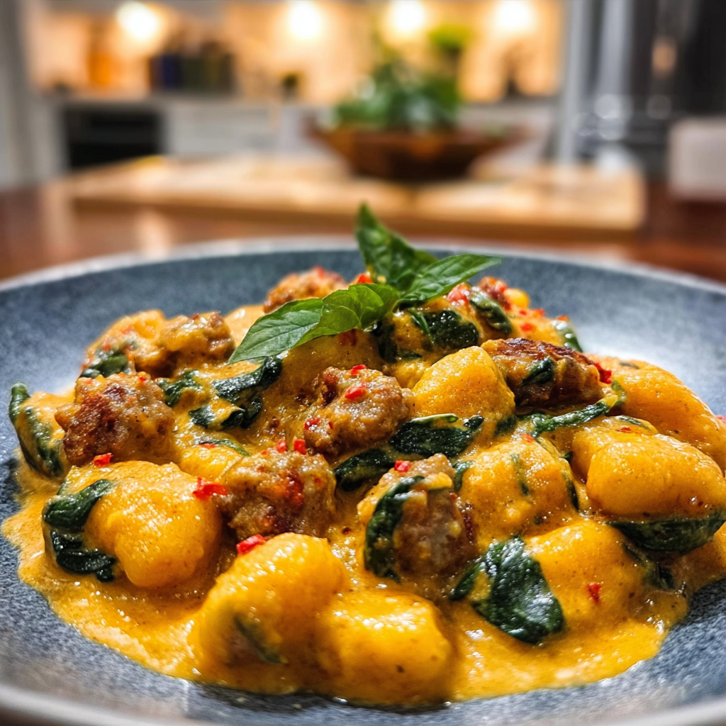 Creamy Pumpkin Gnocchi with Spinach & Sausage Delight