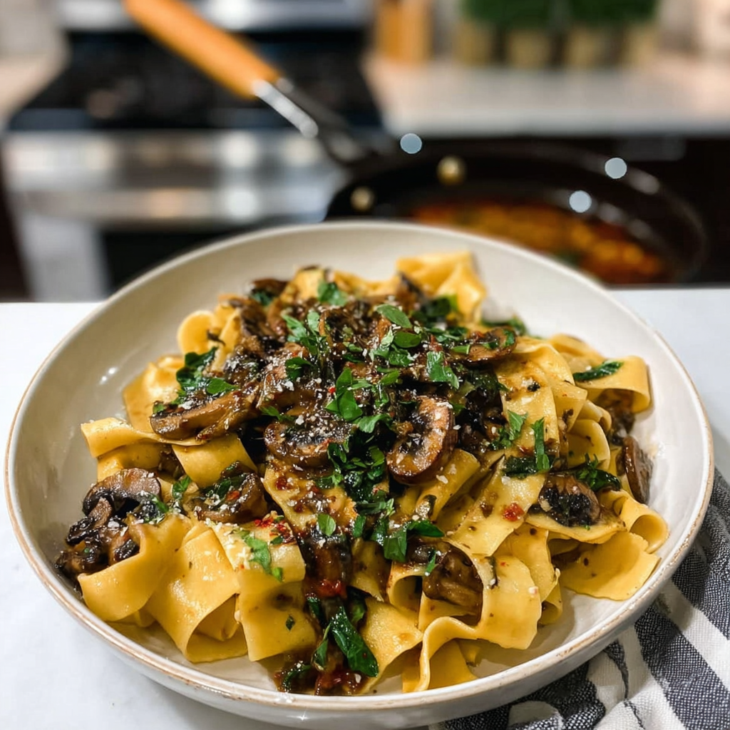 Hearty Pappardelle with Savory Portobello Mushroom Sauce