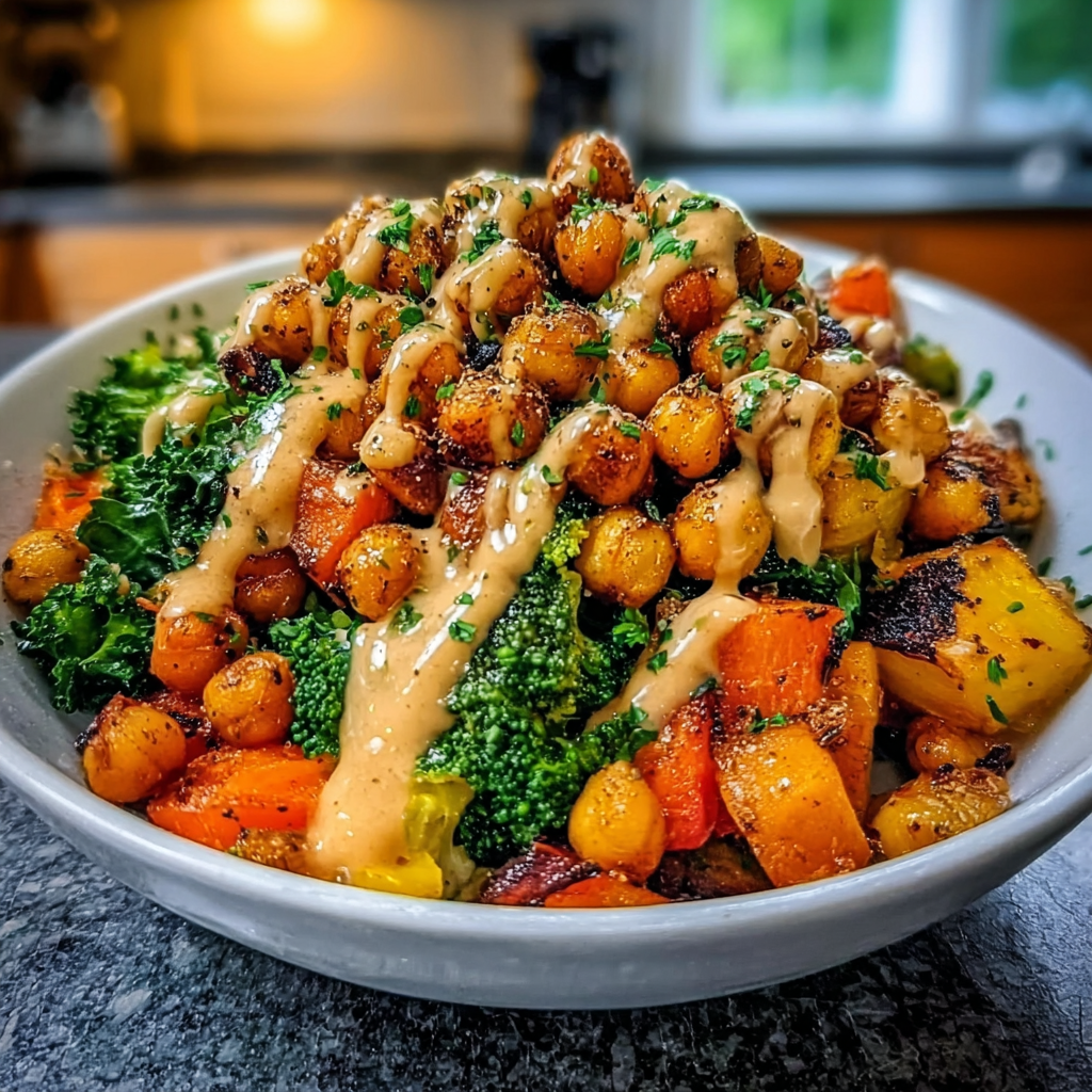 Flavorful Roasted Chickpeas and Veggie Bowl Recipe