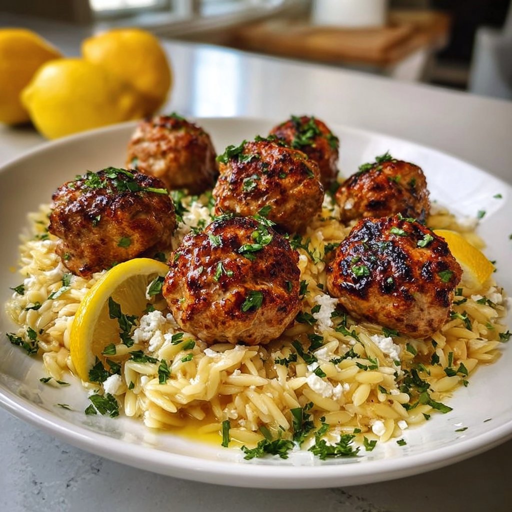 Zesty Lemon Chicken Ricotta Meatballs with Garlic Orzo