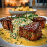 Indulge in a gourmet experience with this Tender Steak paired with a luscious Garlic Cream Sauce. This dish features perfectly seared steak, enveloped in a creamy, flavorful sauce that elevates any meal. Ideal for special occasions or a cozy dinner at home, it balances rich flavors with tender textures, making it a showstopper on your dining table.