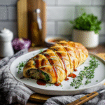 Once you’ve prepared the filling for The Ultimate Vegan Wellington, roll out your puff pastry on a floured surface. Place the cooled vegetable mixture in the center of the pastry. Fold the edges over, sealing them tightly to prevent any filling from leaking during baking. Brush the top with plant-based milk for a golden finish. Bake in a preheated oven at 400°F (200°C) for 25-30 minutes or until golden brown.