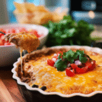 Carefully remove from the oven. Let it cool slightly before serving with tortilla chips or fresh vegetables for dipping. Enjoy every cheesy bite!