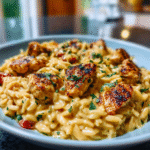 Indulge in the delightful fusion of flavors with this One-Pot Cajun Chicken Alfredo Orzo. Tender chicken and creamy Alfredo sauce meet the bold spices of Cajun cuisine, all while being enveloped in rice-shaped orzo pasta. This dish is perfect for busy weeknights or cozy gatherings, offering a comforting meal that’s easy to prepare and even easier to enjoy. With its rich texture and satisfying taste, this one-pot wonder will quickly become a family favorite.