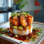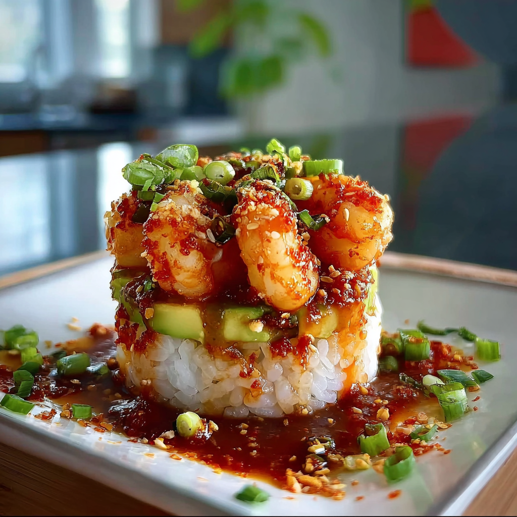 Indulge in the vibrant flavors of Spicy Shrimp Sushi Stacks, a delightful fusion of succulent shrimp, creamy avocado, and zesty sauces layered into an impressive tower. This dish brings together the freshness of sushi with a spicy kick, making it perfect for casual dinners or special occasions. Each bite offers a burst of flavors that will leave your guests asking for more!